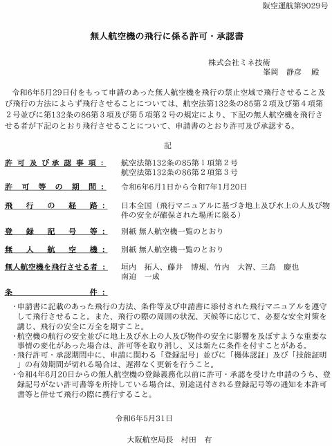 国土交通省の無人航空機飛行許可を更新しました